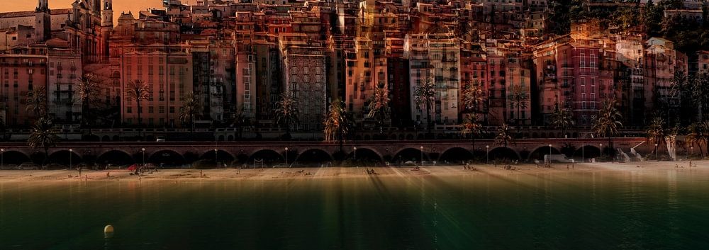 Een panorama van het stadsgezicht van Menton in Zuid Frankrijk. Menton is de meest zuidoostelijke stad van Frankrijk. Het heeft de meeste zonuren van Frankrijk.