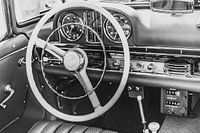 Mercedes-Benz 190SL Roadster interieur met leer en aluminium afwerking in zwart wit. De Mercedes 190 SL is een Duitse sportwagen uit de periode 1955 tot 1963, intern aangeduid als W121.