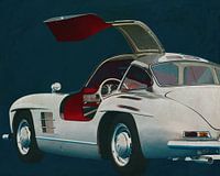 Op dit schilderij zie je de Mercedes Gullwings van de zijkant met 1 deur open zodat je het interieur kunt zien.