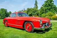 Rode Mercedes Benz 300 SL Gullwing klassieke sportwagen.