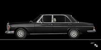 De poster toont een originele Mercedes-Benz W 109 300 SEL 6.3
