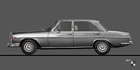 De poster toont een originele Mercedes-Benz W 109 300 SEL 6.3