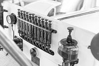 Mercedes-Simplex 40 PS 1902 oldtimer detail. De Mercedes-Simplex 40 pk uit 1903, een tweezits racewagen met hoge prestaties, is een van de oudste motorvoertuigen van het merk Mercedes.