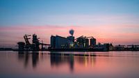 Industrieel landschap van de Amsterdamse Mercuriushaven na zonsondergang