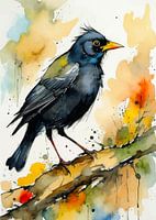 Merel aquarel van MIROKKU