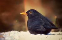 De combinatie van sneeuw, lichte mist en een warme zonsopgang maakte dit plaatje compleet en zorgt ervoor dat de vogel extra uit de verf komt voor de ideale blikvanger aan jouw muur!