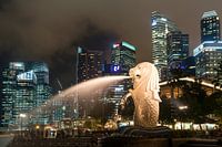 Koop de foto Merlion en skyline bij nacht, Singapore van Peter Schickert als print op canvas, aluminium dibond, (ingelijste) fotoprint, behang en ArtFrame. Voor jou op maat geprint in Fine-Art kwaliteit.