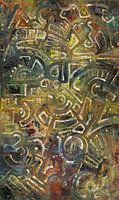 De afbeelding toont abstracte, niet-representatieve patronen van heldere lijnen op een veelkleurige ondergrond.