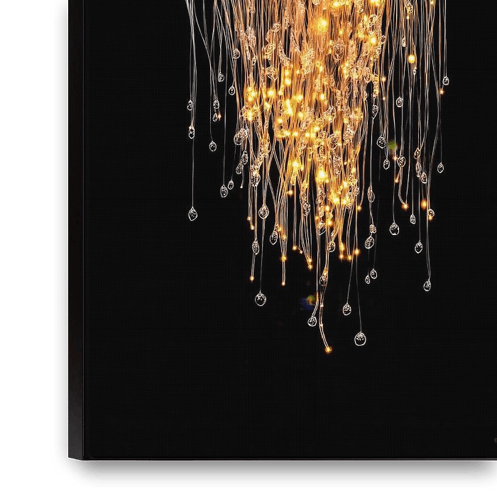 "Mesmerizing Jellyfish" is een fascinerend kunstwerk dat de elegantie en mystiek van een kwal vastlegt, terwijl deze met zijn sprankelende, gouden lichten de ruimte vult. De glanzende, doorschijnende kwal lijkt gevangen in een magische gloed, waarbij de transparantie van de tentakels een betoverend contrast vormt met het donkere,…