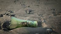 Message in a bottle. Aangespoeld op het strand, er is nog net een ster te zien op het glas... De zee neemt en de zee geeft.