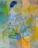 Koop dit abstracte kunstwerk Met de fiets van pol ledent op canvas, aluminium dibond, (ingelijste) fotoprint, behang en ArtFrame, op maat geprint in Fine-Art kwaliteit.