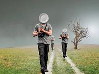 Schilderijen en digitale ontwerpen. Ik word geinspireerd door surrealistische schilders als Dali, Margritte en Willink, maar altijd met een vleugje humor.