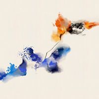 Abstract werk van Roberto Moro met zachte kleurtinten in blauw en oranje.