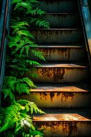 Verborgen grijstinten ontmoeten levendige groentinten, terwijl delicate varens de industriële charme van de rustieke trap omarmen. Deze spannende combinatie van natuur en textuur voegt een vleugje stadsjungle toe aan elke woonkamer, nodigt uit tot dromen en creëert een harmonieuze verbinding met de natuur. Ideaal voor een creatieve sfeer!