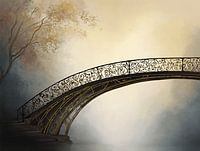 Deze close-up van een metalen boog, volledig met robuuste klinknagels, blendt subtiel weg tegen een dromerige mistige achtergrond. Ideaal als rustgevend en toch krachtig kunstwerk in interieurs waar industrieel design een zachte touch mag krijgen.