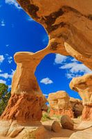 Metate Arch bevindt zich in Devil's Garden, 12 mijl langs de Hole-in-the-Rock Road in het Grand Staircase Escalante National Monument, Verenigde Staten.