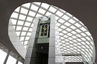 Komend vanaf het Centraal Station Den Haag zag ik hoe mooi de liftkoker een bijzondere samensmelting met de structuur van het glazen dak van de Metro vormde.