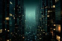 Ontdek ‘Metropolis Twilight’ - een hedendaags kunstwerk dat de zintuigen prikkelt. Dit schilderij combineert diepe blauwe en groene tinten met reflecties van stedelijke architectuur bij nacht. Voeg een vleugje mysterie toe aan je collectie.