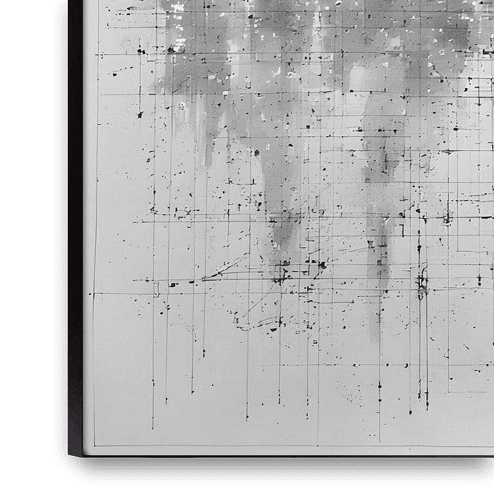 Deze zeer dynamische en expressieve zwart-wit tekening legt een bruisende skyline van een stad vast met een ongelooflijke energie. De wolkenkrabbers zijn weergegeven met fijne lijnen en ingewikkelde details, hun lichten gloeien tegen de nacht. De weerspiegeling op het water beneden is geen spiegelbeeld, maar een gefragmenteerde en…