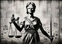 Een werk dat mevrouw Justice afbeeldt in een ietwat ruige straatstijl met een graffitigevoel.