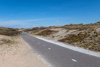 LF1 lange afstand fietsroute. Cycle path through the dunes. Part of EuroVelo 12.North Sea Cycle Route.