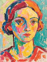 Mia - Portretschilderij in eigentijdse kleuren - Toon je moed met eigentijdse kleuren met dit moderne en abstracte kunstwerk, dat doet denken aan de grote werken van de expressionistische meesters. Kies zelf het formaat en het materiaal uit de vele opties. Verander je huis in een toevluchtsoord van kunst, precies zoals jij het wilt!