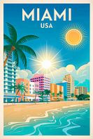 Zonnige stranden ontmoeten kleurrijke architectuur, terwijl palmbomen zachtjes wuiven in de warme wind. Felle zonnestralen dansen over het glinsterende water van de kust en creëren een perfecte tropische idylle. De charme van Miami pulseert in elk detail - hier smelten joie de vivre en ontspannen elegantie samen tot een onvergetelijke ervaring.