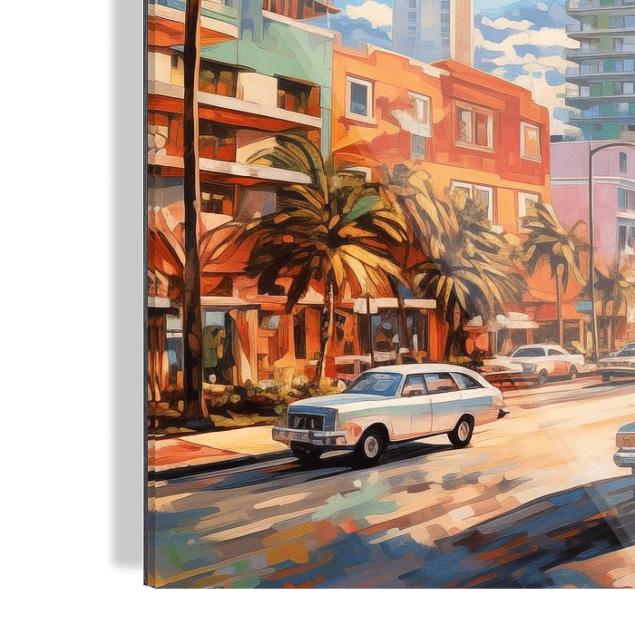 Deze miami beach binnenstad schilderij brengt de levendige sfeer van Miami tot leven in een stijlvol en artistiek beeld. Deze afbeelding toont een kleurrijke impressie van de binnenstad van Miami Beach, waar moderne architectuur, palmbomen en een tropisch stadsleven samenkomen. Het werk vangt de essentie van zon, energie en beweging,…