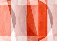 Mid Century Bauhaus Vormen Pastel Schilderij Rood Koraal.