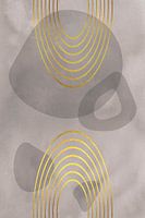 Moderne abstracte en minimalistische mid-century graphics met een elegant tintje. Abstracte vormen in een delicate toon en in een dominant goud vormen het tafereel.