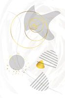 Moderne abstracte en minimalistische mid-century graphics met een elegant tintje. Abstracte vormen in een delicate toon en in een dominant goud vormen het tafereel.