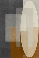 Een modern abstract schilderij in de kleuren grijs, blauw, roestbruin.