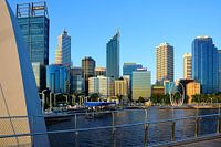 Het was een waar genot om 's middags over de Elizabeth Quay brug te lopen in de stad Perth, West-Australië. Het uitzicht op de wolkenkrabbers van het zakendistrict is prachtig, vooral als het's avonds zonsondergang is.