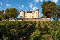 Deze prachtige, zomerse natuurfoto is gemaakt met de NIKON D90 op 26 augustus 2017 in de middaguren. De foto toont zomerse wijngaarden bij het Franse kasteel van La Grezette in het zuidwesten van Frankrijk.