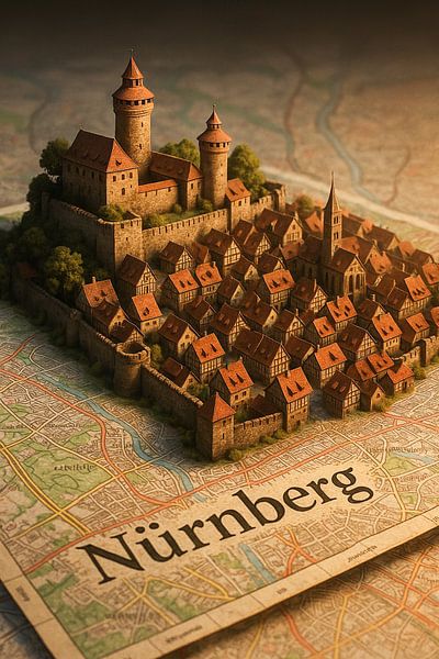 Middeleeuwse 3D-kaart van kasteel Neurenberg - historische Beieren Muurkunst van Travel Shop