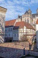 Deze foto toont het uitzicht vanaf de Möllenvogteigarten op de Dom van Magdeburg. Magdeburg is een Midden-Duitse stad aan de Elbe en de hoofdstad van de deelstaat Saksen-Anhalt.
