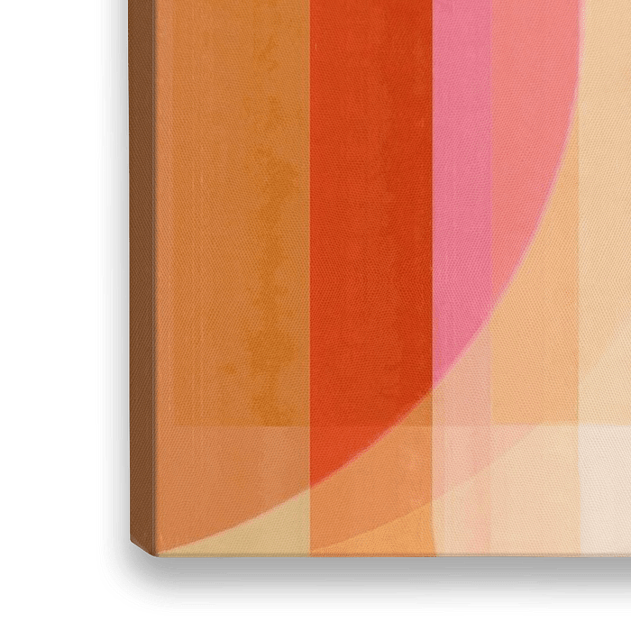 Bauhaus-vormen uit het midden van de eeuw in perzikkoraal rood okergeel.