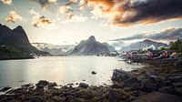 Middernacht zon, Reine, Lofoten  van Niels Devisscher