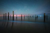 Zeevonk bij het Palendorp van Petten met schitterende sterrenhemel en de kleur van het Windenergiegebied Hollandse Kust Noord.