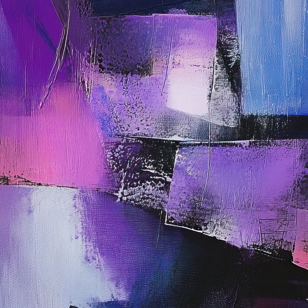 Details: abstract, schilderij, modern, kunstwerk, geometrisch, blauw, paars, zwart, canvas, dynamisch