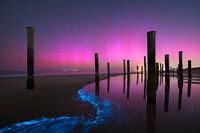 Het Palendorp van Petten aan zee zoals je het nooit eerder zag. Met noorderlicht en spiegeling op het water met daarbij een spoor van Zeevonk.