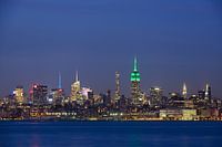Midtown Manhattan Skyline in New York met het Empire State Building in de avond. Aan de rechterkant van de foto zie je het Chrysler Building.