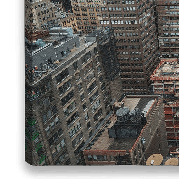 Een bewolkte namiddag in Midtown Manhattan, New York. Te zien is het gebied tussen Madison Square Garden en The Empire State Building.