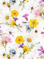 prachtige gedroogde zomerbloemen die als een patroon in kleine boeketten zijn gerangschikt.