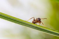 Klein en vooral snel miertje vastgelegd op een grasspriet. Door de rustige achtergrond komt de mier mooi uit op de foto.
