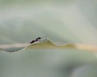 Deze mier loopt over een blad van een struik, maar door de macrolens is het net of hij bergen aan het beklimmen is.
