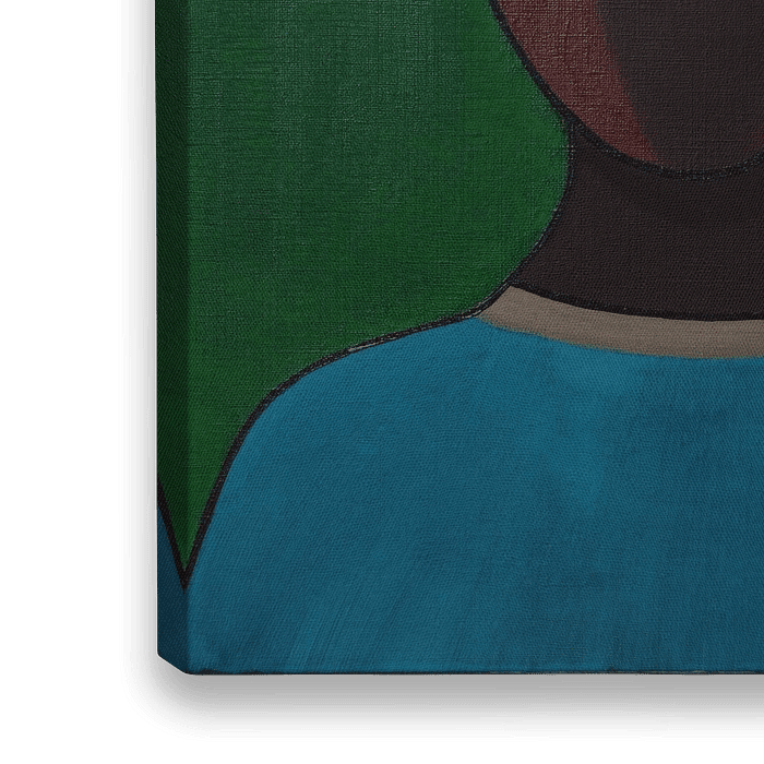 Dit is een semi-abstract olieverfschilderij. Het stelt een jongen van Afrikaanse afkomst voor met een blauw topje op een groene achtergrond. Het is een zeer lumineus werk met een belangrijk werk over de schaduw en het licht. Het is een vrij krachtig schilderij door zijn helderheid en eenvoud. Het zou passen bij mensen die recht op hun doel afgaan en die efficiëntie nastreven in alles wat zij doen, terwijl zij aandacht hebben voor hun medemens.