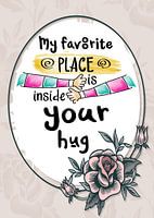Motiverende woorden in een bloemenframe Mijn favoriete plek is in je knuffel
