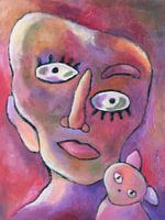 Schilderij geïnspireerd door de Cobra Kunst. Origineel 30x40 cm. Een selfie met kat.