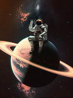 In de serie werken uit de "My Space" collectie heeft Ed, onze hoofdpersoon, eindelijk een stabiele schuilplaats gevonden in het uitgestrekte sterrenstelsel. Als andere ontdekkingsreizigers langslopen, zien ze hem in een staat van sereniteit, een warme groet overbrengend vanuit zijn nieuwe thuis in de ruimte.